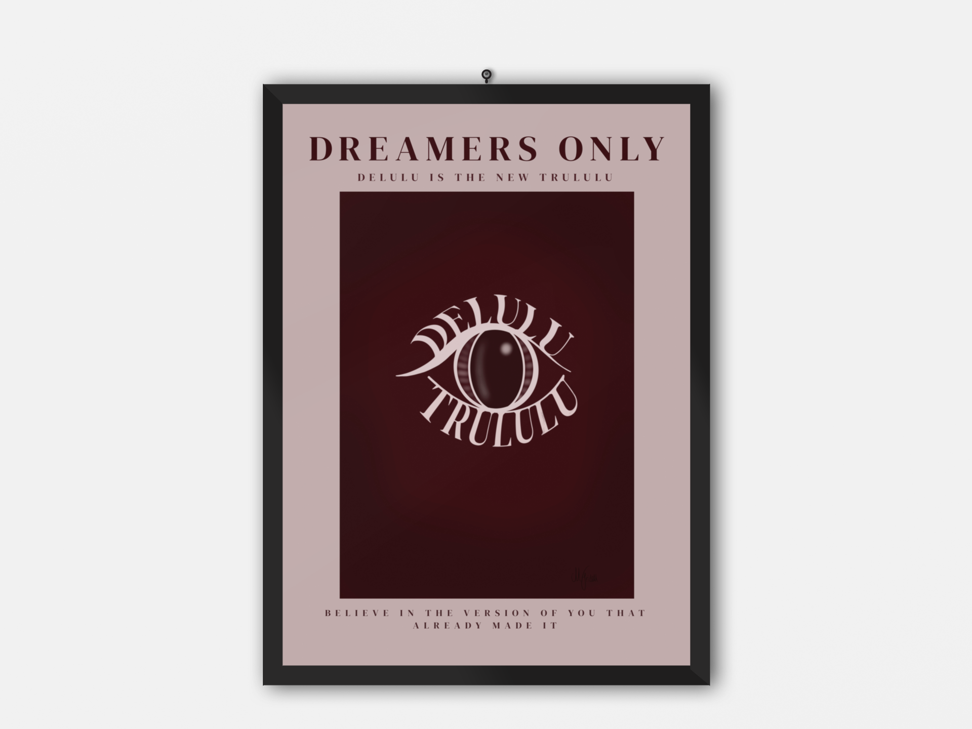 Dreamers Only är en drömmig och harmonisk poster som påminner dig om att det är okej — och viktigt — att ha stora drömmar.