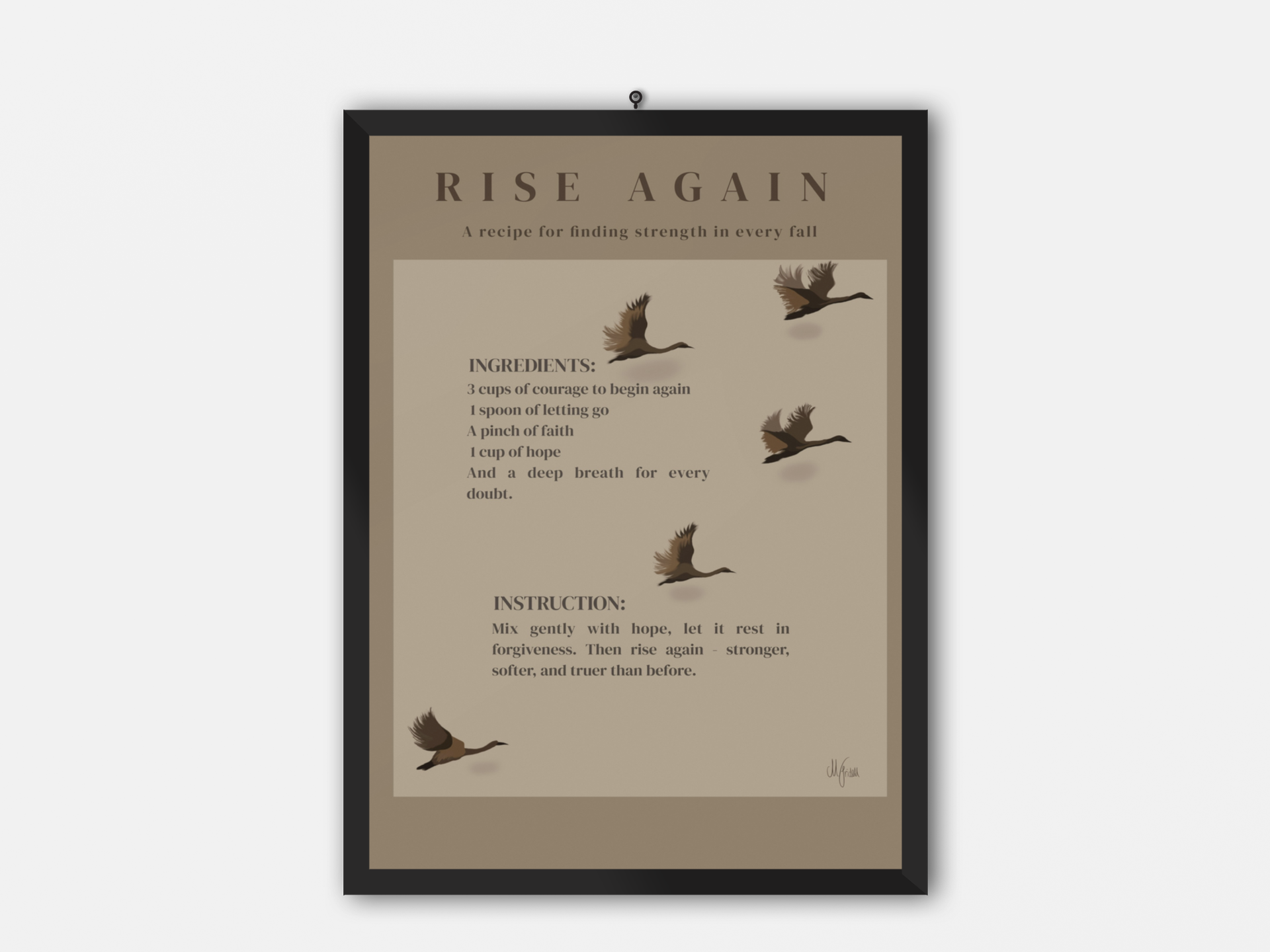 Rise Again är en mjuk och stöttande poster som påminner dig om att varje höst, varje paus och varje fall är en möjlighet att börja om — starkare än innan.