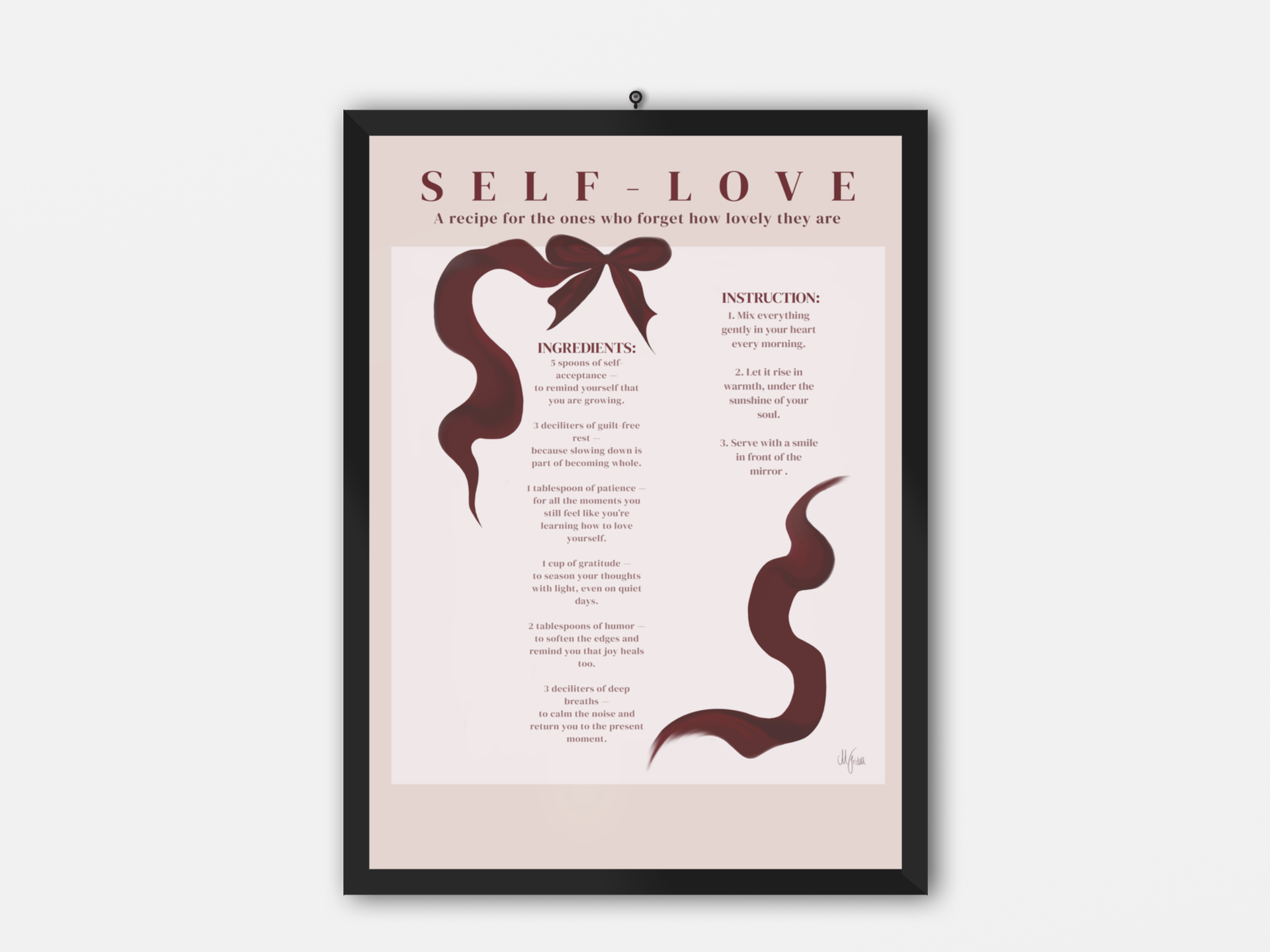 Perfekt att hänga i sovrummet, vardagsrummet eller vid din spegel som en daglig påminnelse om ditt egna värde och skönhet.